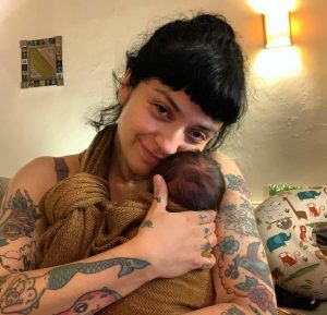 (Mon Laferte y su hijo Joel)