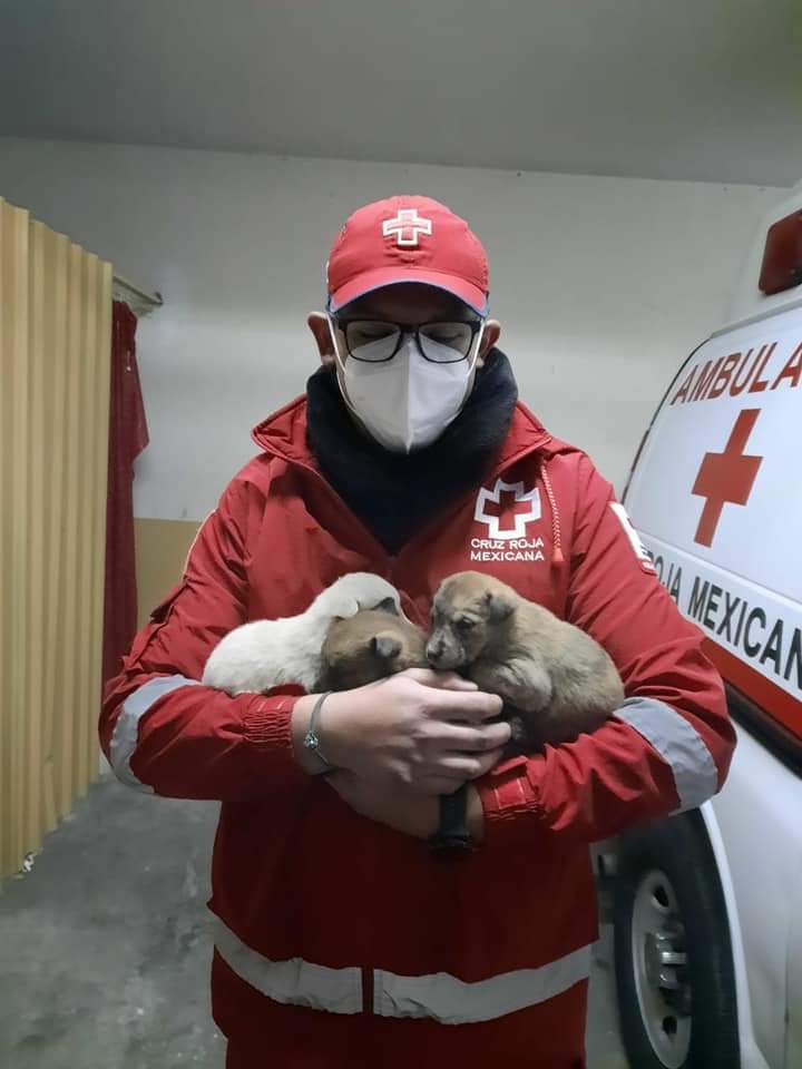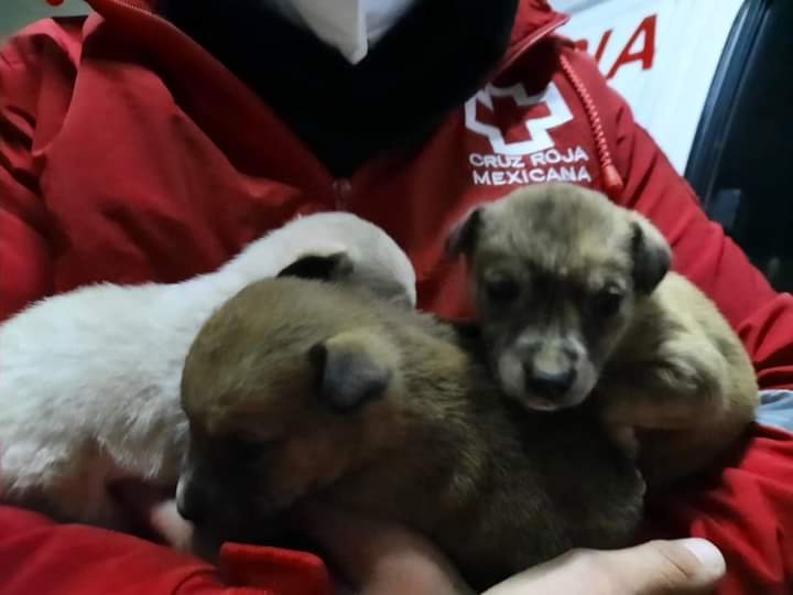 Voluntarios de Cruz Roja Mexicana delegación Uruapan durante el transcurso de la madrugada, mientras regresaban de un servicio, rescataron estos perritos los cuales se encontraban en situación de abandono.