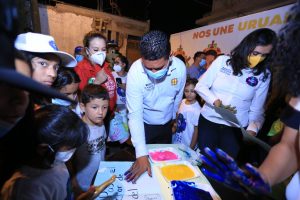 Como padre, aseveró, el compromiso es propiciar el mejor escenario para las actuales y futuras generaciones, plasmándolo con las manos de las pequeñas y pequeños impresos en tinta.