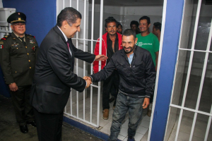 En compañía del secretario de Seguridad Pública, Tránsito y Vialidad Municipal, Capitán 2/o de Infantería Abelardo Lara Flores; Miguel Ramírez García, coordinador regional de la Guardia Nacional; el coronel, Adrián Rodríguez Pastor; y el coronel de Artillería DEM de la Sedena, José Silvestre Marín Peñaloza, el presidente municipal liberó a hombres que estaban detenidos por cometer faltas administrativas, a quienes les pidió valoraran el hecho de ser liberados, así como a no reincidir en actividades que alteren el orden público.