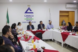 Funcionarios municipales se reunieron con miembros de Cámara Nacional de Comercio (Canaco) Uruapan, para aclarar dudas en el tema de obra pública y planeación municipal.