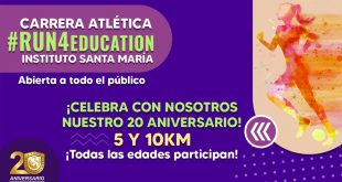 Con una participación de más de 200 personas se llevó a cabo la primera carrera atlética #RunForEducation con motivo del vigésimo aniversario del Instituto Santa María. Padres de familia, alumnos y corredores profesionales se dieron cita este domingo en la Av. Latinoamericana para correr 5 y 10 km y posteriormente …
