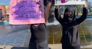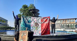 Uruapan, Mich.-Con agua roja simulando sangre despertó la conocida ‘Fuente de los Olanes’ ubicada en el Paseo Lázaro Cárdenas de la ciudad de Uruapan este 15 de septiembre. Encapuchadas de negro y como acto simbólico, mujeres feministas de la ciudad demostraron su apoyo a las mujeres de OKUPA Casa de …